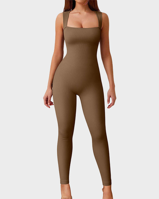 Ribbed Square Neck Sleeveless Workout Jumpsuit