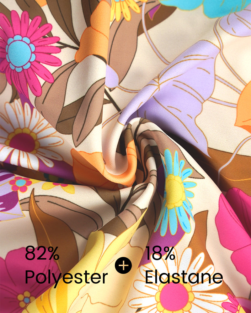 The vibrant floral print brings a fresh and lively vibe, perfect for embracing the spirit of summer.
