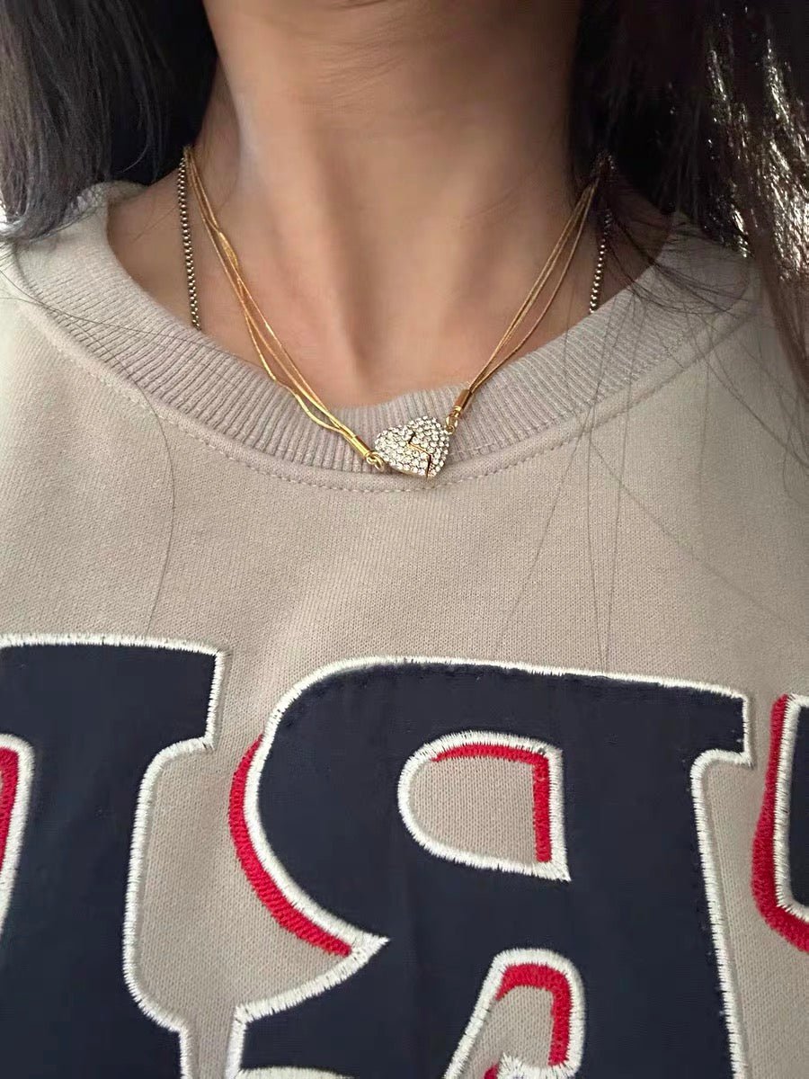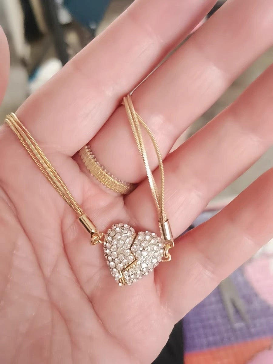 Magnetic Heart Clasp: Easy on/off magnetic closure hidden within the crystal‑encrusted heart pendant